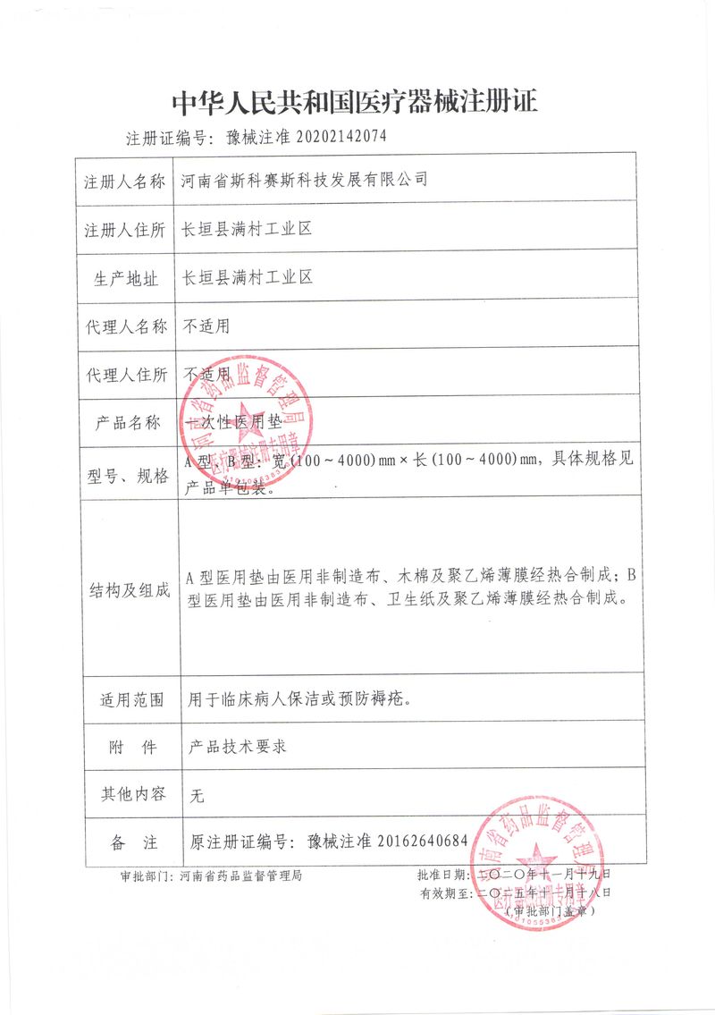 河南省斯科賽斯科技發(fā)展有限公司創(chuàng)建于 2011 年,位于“中國(guó)醫(yī)療耗材之都”- 河南省長(zhǎng)垣縣,西臨 308 省道,南靠新菏鐵路,北依長(zhǎng)濟(jì)高速,交通便捷,經(jīng)濟(jì)發(fā)達(dá),環(huán)境優(yōu)美。斯科賽斯積極進(jìn)入醫(yī)療健康和服務(wù)領(lǐng)域,秉承為用戶創(chuàng)造價(jià)值的理念,專注于醫(yī)用耗材解決方案的研發(fā)和運(yùn)營(yíng),并為用戶提供完善的產(chǎn)品解決方案;  斯科賽斯主要生產(chǎn)醫(yī)用麻醉系列、醫(yī)用高分子系列、醫(yī)用敷料包系列、醫(yī)用無(wú)紡布系列、醫(yī)用防護(hù)系列、醫(yī)用脫脂棉系列、生物材料制品類等七大類、100 多個(gè)品種、400 多個(gè)規(guī)格的產(chǎn)品。公司占地面積約 30000 平方米,建筑面積20000 平方米,擁有 10 萬(wàn)級(jí)的凈化車間總面積 10000 平方米。擁有國(guó)際先進(jìn)水平的生產(chǎn)設(shè)備和檢測(cè)儀器,技術(shù)裝備精良,檢測(cè)手段完善,為醫(yī)療行業(yè)的不斷發(fā)展進(jìn)步提供保障。公司順利通過(guò) ISO9001、ISO13485 質(zhì)量管理體系認(rèn)證。  斯科賽斯堅(jiān)持研發(fā)高科技新產(chǎn)品,力爭(zhēng)在醫(yī)療器械關(guān)鍵領(lǐng)域取得技術(shù)和研發(fā)的重大突破;立足國(guó)內(nèi)和國(guó)際兩個(gè)市場(chǎng),逐步實(shí)現(xiàn)管理理念、經(jīng)營(yíng)機(jī)制、人力資源、技術(shù)、產(chǎn)品、市場(chǎng)等全方位對(duì)接,提高企業(yè)的核心競(jìng)爭(zhēng)力;過(guò)去的歲月里,斯科賽斯砥礪前行,誠(chéng)信務(wù)實(shí),銳意進(jìn)取,不斷創(chuàng)新,用自己的睿智和辛勞,以富有責(zé)任感的使命,在探索中追求,在追求中超越,致力于成為值得信賴的醫(yī)療用品生產(chǎn)企業(yè)!在未來(lái)的日子里,斯科賽斯將一如既往豪情滿懷,信心百倍,攜手并肩,執(zhí)著追求,向更高的的目標(biāo)前進(jìn),鑄造新的輝煌!